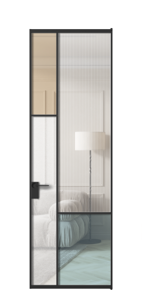 Лаконичный разделительный профиль внутренней раскладки полотна обеспечивает эстетический внешний вид конструкции и идеальную стыковку вставок из стекла.