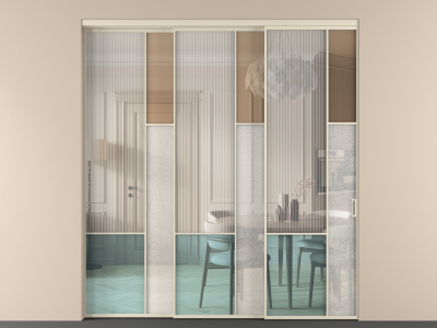 Перегородка Mosaic внутри проёма 3 створки с синхронным механизмом